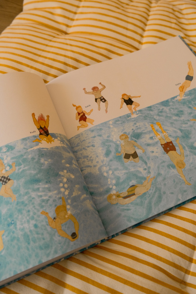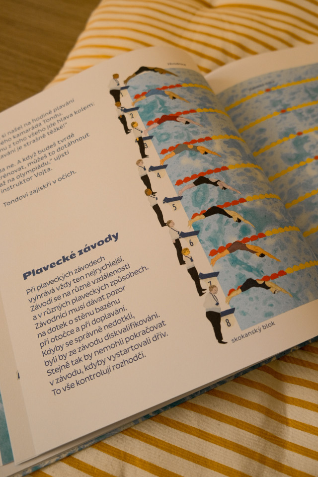 Tohle je suprová knížka, nabízí originální téma - ideální pro všechny plavce začátečníky, kterým může usnadnit boj s potenciálním strachem z vody/bazénu, je opravdu krásně zpracovaná, vizuálně příjemná - žádný cvokhaus a barevná přeplácanost.